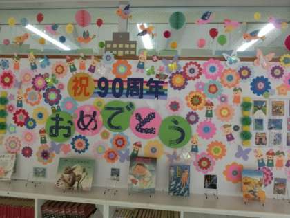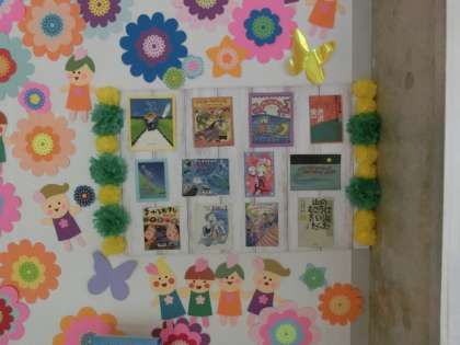 図書ボランティアの壁面装飾担当の保護者の皆様により、図書室横の装飾が新しくなりました。