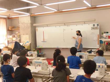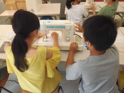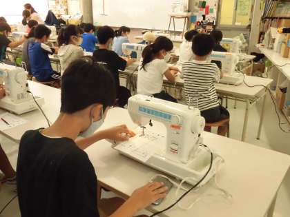 ミシンの操作の仕方を歌で覚えたり、平泳ぎの手の動きといった具体的な内容で覚えたりしながら、実際に操作しました。