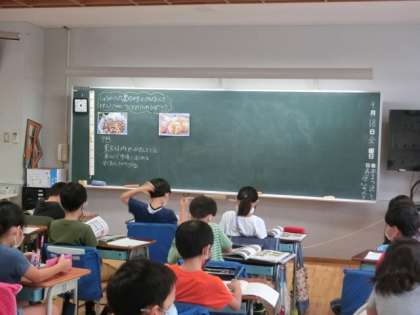 授業の導入では、前時に学習した収穫したジャガイモの画像と、食卓にあるジャガイモ料理を見比べて