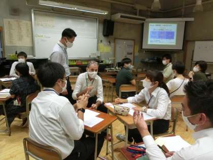 外部からの講師を招き、教員の外国語研修を行いました。研修では、児童が楽しく授業に取り組めるようなsmall talkの実施の仕方や、実際の教科書を使った模擬授業型の演習、そしてアクティビティのアレンジの仕方などを学びました。今回の研修を生かして、より児童にとって楽しく、学びのある授業を展開していきたいと思います。