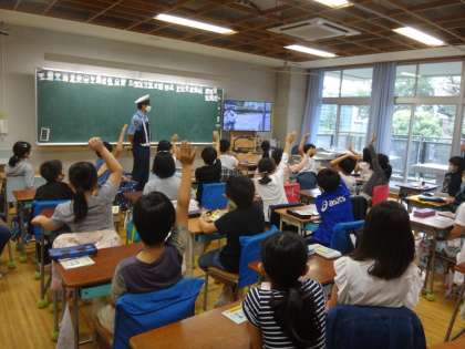 3年生は、自転車安全教室で世田谷警察の方々に自転車の安全な乗り方を教えていただきました。今回は、実技ができなかったので、映像を通して安全な乗り方を学習します。