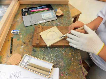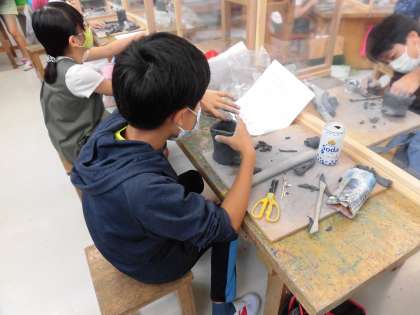 6年生は毎年恒例の焼き物のカップを製作中です。4年生でテラコッタ粘土のネームプレート、5年生でおやつの時間に使う信楽焼きの器の製作を経験しているので、焼き物には慣れています。今回は、信楽焼の粘土を板状に伸ばし、空き缶を型に”板作り”の方法でマグカップを表します。素焼き、絵付け、本焼きのプロセスを経て完成させる作品です。更に、今年度中止になった日光移動教室の木彫体験の替わりに、授業で木彫を経験できるように計画しました。自作のカップの下に敷くコースターを彫刻刀で、浮き彫りにしているところです。どちらも思い出深い卒業記念作品になります。完成が楽しみです。
