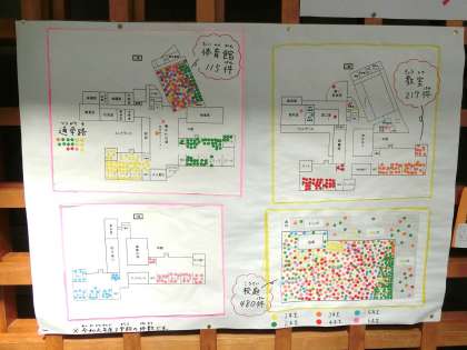 けがの発生が多い場所には、びっしりとシールが貼られ、