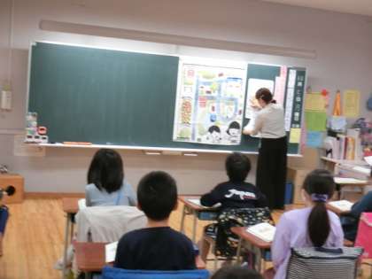 授業の導入では、拡大した地図を見ながら先生の道案内を聞いて待ち合わせ場所に行けるかやってみました。