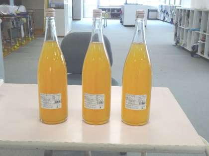 川場村から送られてきた特産品のリンゴジュースを、先日5年生みんなで