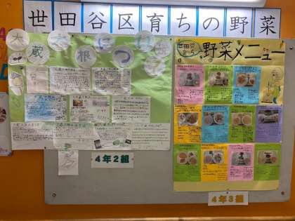 4年生では世田谷区育ちの野菜について、各クラスのテーマに沿い、グループごとに調べ学習を行いました。