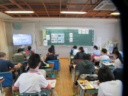 6年生は、Unit4“My SummerVacation”で過去のことについてどう表現するかということを学びました。過去形になると発音も、スペルも変化するので、発音練習や単語をカードに書く練習を丁寧に行いました。学習のまとめとして、“My Summer Vacation“カードを作成し、それをもとに発表活動を行いました。過去形という難しい単元でしたが、何度も口に出すうちに、スムーズに言えるようになっている様子が見られました。