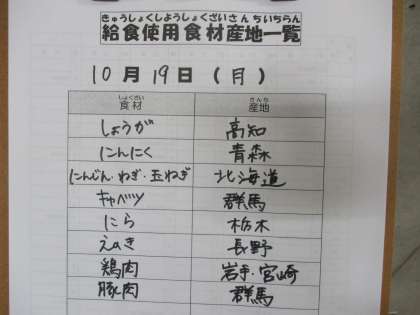 10月19日(月)の給食