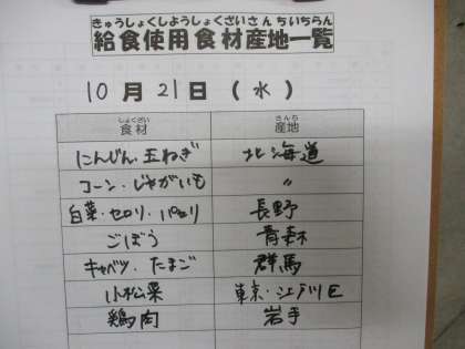 10月21日(水)の給食
