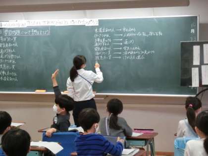 子どもたちからは、「救急隊員は、火事でけがした人を助けると思います。」「消防士は、どんな火か見て消すと思います。」など発表し合うことができました。授業の最後には、もし、学校が火事になったらどうなるか考え、人だけでなくいろいろな設備も関係していることに気付き、「どんな物(設備)があるか、探検したいです。」という次への学習への意欲をもつ子もいました。