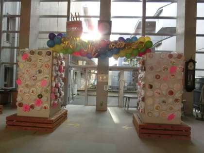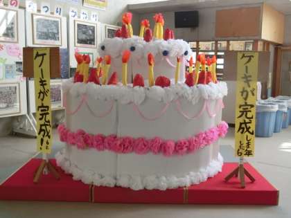 校舎内では、周年に関する各学年の掲示物や、メモリアルスペース、大型ケーキ、バルーンアート等お祝いする環境が整いました。