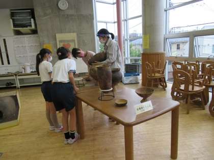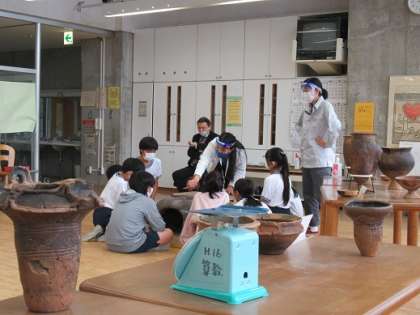 縄文時代・古墳時代の土器の見た目の違いは授業の資料から学んでいましたが、この授業で重さを体感することができました。どのくらいの重さなのか、予想をすることで結果に驚く子どもたちが印象的でした。