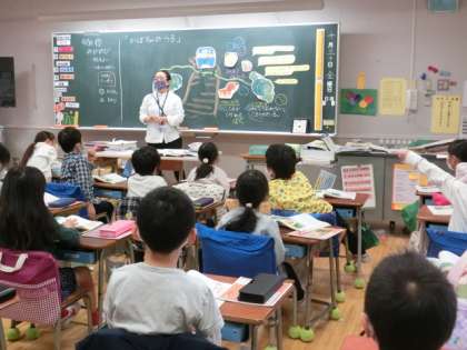 その後、教材文である「かぼちゃのつる」を読みました。のびのびと自分のつるを伸ばしていたかぼちゃは、人の迷惑になっていました。そのときの周りにいるはちや、ちょうちょの気持ちを考えました。