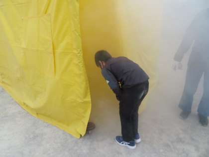 煙中訓練では、煙の中を避難する疑似体験が
