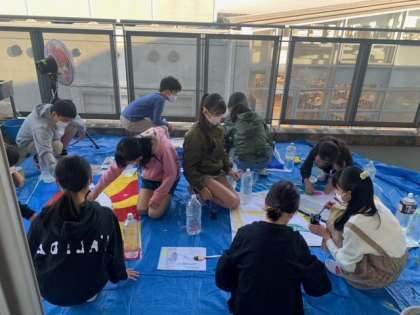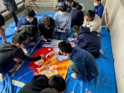 各クラスで話し合って最終デザインを決定し、旗の作成に取りかかりました。