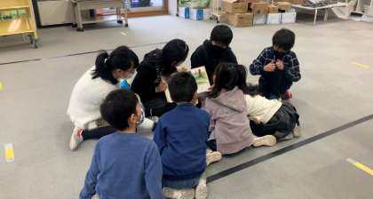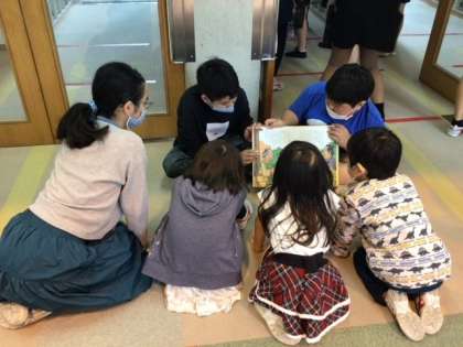 交流会では読み聞かせをし、その後、考えた遊びを1年生と一緒に楽しみました。