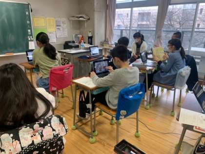 本日、電子図書館「世田谷スクールライブラリー」についての授業を各クラスで行いました。インターネットを通じて、電子書籍の貸し出し・予約をすることができます。