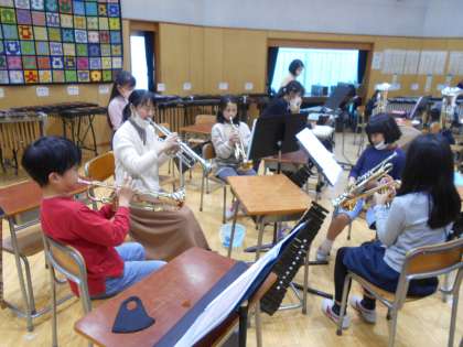 毎週火・水・木曜日の朝の時間、月一回のクラブ活動の時間にブラスバンドクラブの練習が行われています。