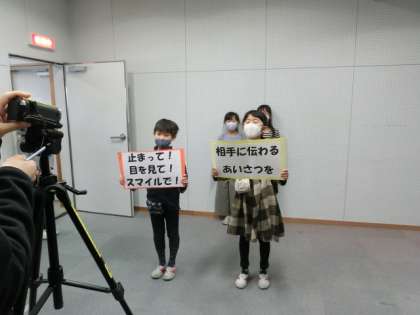 「止まって 目を見て スマイルで 相手に伝わるあいさつを」