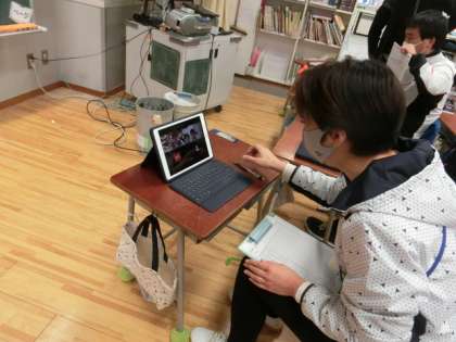 待っている担任は、お子さんや保護者の方と通信できるととてもうれしそうに声をかけていました。