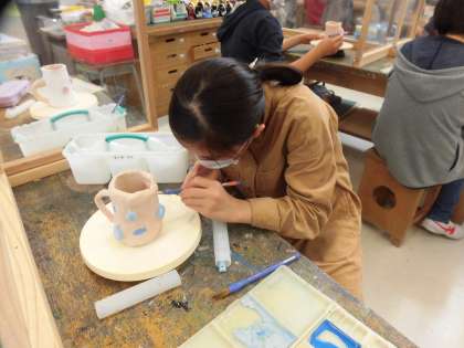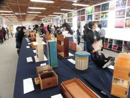 各学年フロアにたくさんの作品が並び、子どもたちが興味深く鑑賞をしています。6年生は、切り絵の平面作品「自分らしさを切り取って」、生活の中で楽しく使える木を材料にした入れ物「わたしはデザイナー」、空き缶を型にして成形した「やきものアキカンカップ&木彫のコースター」を展示しています。明日から土曜日午後、日曜日が保護者の方の鑑賞日です。例年とは異なる鑑賞時間となりますが、子どもたちの想像力に満ち溢れたアート空間をお楽しみいただけましたら幸いです。