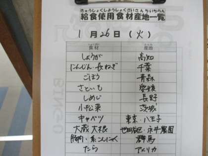 1月26日(火)の給食