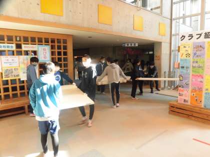素敵な作品がたくさんあり、まだ見ていたい気持ちもありましたが、体育館等はほかの学習でも使いますので、片付けを6年生が行いました。