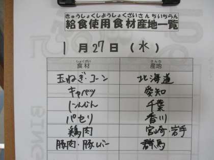 1月27日(水)の給食