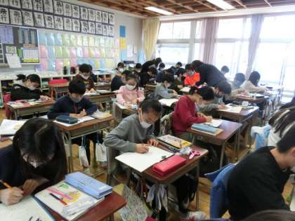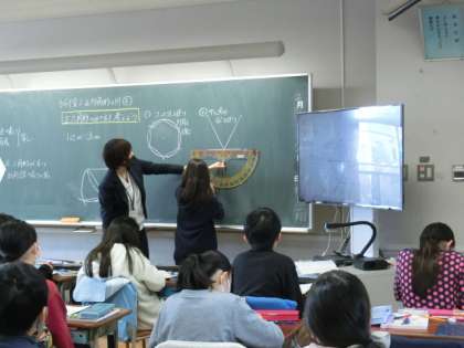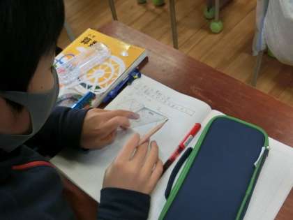 辺の長さや角度が等しいこと、正三角形6個で作られていることなどを想起し、自分で見通しをもち、かくことができました。その後、いろいろなかき方を発表し合いました。特徴をいかすことで図形をかくことができることが分かりました。