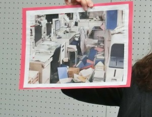 会社では書類が上から落ちてきたりして、とても危険な様子です。