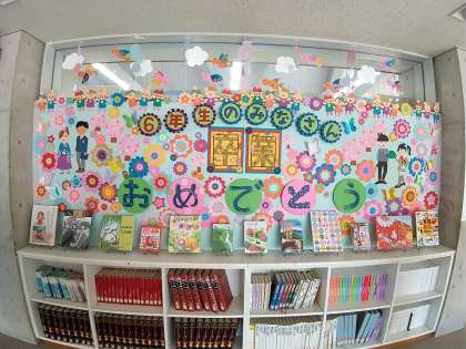 本日、図書室の壁面装飾の保護者のボランティアの皆様