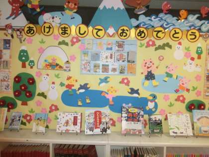 先日までは、新年を迎えたお正月の様子が飾られていました。
