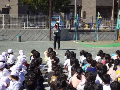 本日、今年度最後の避難訓練を行いました。火災を想定したもので、