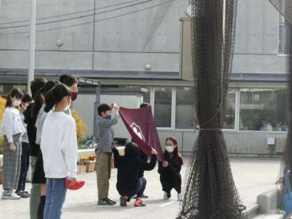 そして最後に、「校旗の引き継ぎ」を行いました。6年生から5年生へ引き継がれ、5年生は来年度の最高学年として、立派に決意を述べました。