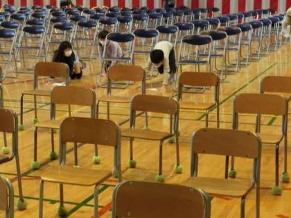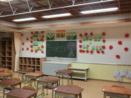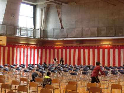 入学式を行う体育館をきれいにしたり、教室の装飾を