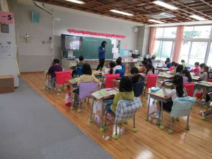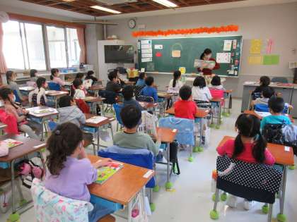 テレビに教科書の画面を映したり、黒板に絵を貼ったりと、分かりやすい授業を展開していきます。