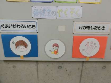保健室では、けがや体調不良を自分の言葉で伝える力を