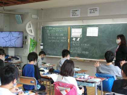 いくつかの形を提示し、根拠を明らかにして仲間分けをしました。