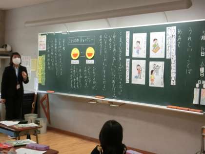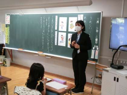 日常の生活の中で、うれしいなと思った場面を担任が紹介しました。