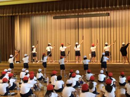 同じ学年の仲間が頑張っている姿を見て、どの子も一生懸命覚えようと、何度も繰り返し練習しており、運動会に向けて気持ちが高まっています。