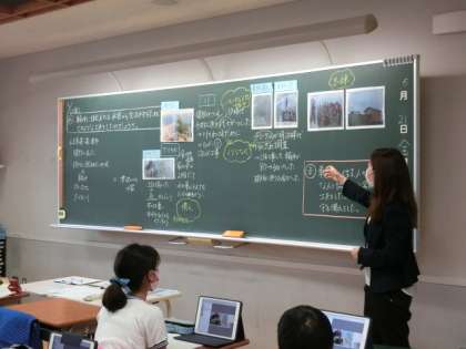 そして、そこに住む人々が、水害から守るためにどのような工夫をしているか調べることを授業のめあてとしました。