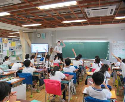 4年生は今月、天気の表現やその天気に合った遊びや服装について学習してきました。学習のまとめのプレゼンテーションとして、オリジナルの天気を考えて、発表を行う予定です。子どもたちは、自分が好きなものが降ってくる天気や動物と触れ合える天気など様々な天気を楽しそうに絵に描いていました。次回の授業では、子どもたち一人一人がプレゼンテーションを行う予定です。