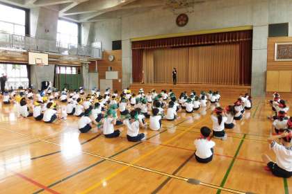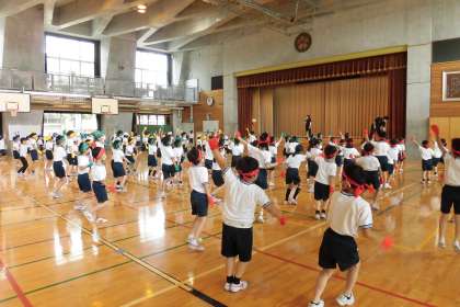 「もっと練習したかった!」運動会の練習が終わった後には、こんなことが子どもたちから聞こえてきます。今日は体育館で、運動会の踊りの練習を行いました。練習を始めたころは前で踊っている先生のことを見ながら踊っていた子どもたちも、自信をもって踊れるようになってきました。