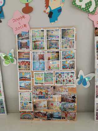 この装飾は、保護者の方の中から有志ある方々が集まって、季節ごとや行事ごとにとても素敵な装飾を作ってくださっています。
