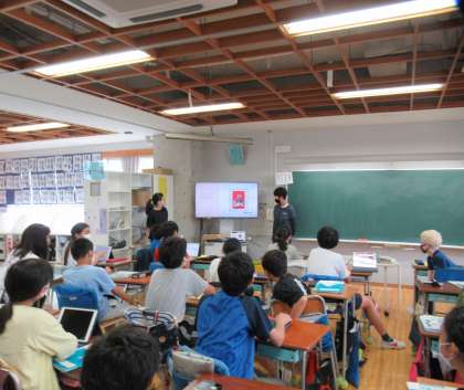 6年生は、先月日本の文化について英語でどう表現するのかを学びました。その学習のまとめとして、子どもたちで調べた日本の行事やお祭りのプレゼンテーションを行いました。iPadを使ってのプレゼンテーションは初めてでしたが、子どもたちはとても意欲的に活動に取り組んでいました。当日は、友達のプレゼンテーションを見ることで、よい刺激を受けたようで、「また、やりたいです。」という前向きな感想が多く見られました。