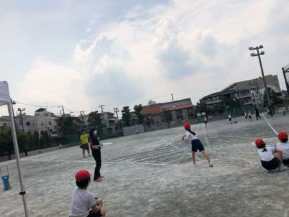 3,4年生は、5,6校時に各クラスでグループをつくり、体力テストに臨みました。