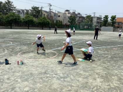 8日の3,4校時に、2,5年生合同で体力テストを実施しました。