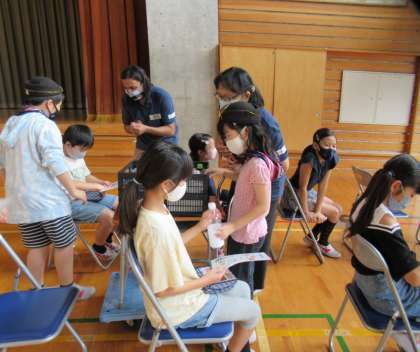 その後のグループに分かれた活動では、医者や患者・客室乗務員になりきってコミュニケーションの練習をしたり、パンフレットをもとに旅行の計画を立てたりしました。子どもたちは積極的に英語を口にしたり、ボランティアをしたりしていました。