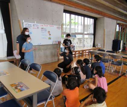 まず、始めにALTの自己紹介がありました。子どもたちはこのイベントをとても楽しみにしていたようで、ALTが出身国や好きなものを話すと、元気に反応していました。