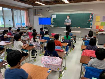 外国語活動では、ALTの先生のおもしろい自己紹介に興味を示し、英語やジェスチャーを楽しみました。